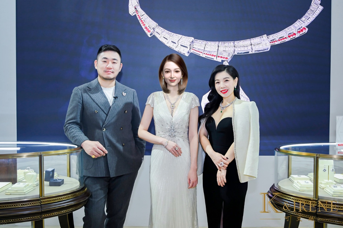 Executive Vice President of China Gems & Jade Exchange and Ms. Jojo Qin, Founder of K&IRENE unveiled the new jewelry collection -- "Haïmalong and Haïmafong".